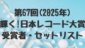 テレビ 【第67回日本レコード大賞(2025)】タイムテーブルとセットリスト・受賞者&出演者まとめ 2025 年 12 月 30 日 (火) 17:30~22:00 に第67回 輝く!日本レコード大賞... 2025.12.26 テレビ